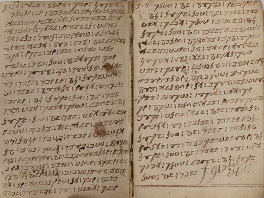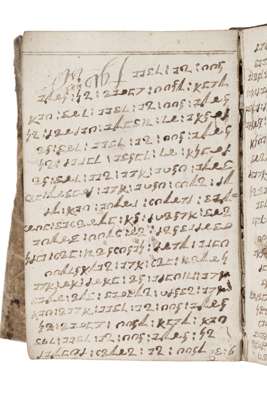manuscript notebook, c.15 x 10cm, including 64 leaves of text written in simple code, 18th century, vellum, a few tears sometimes affecting text, covers worn
