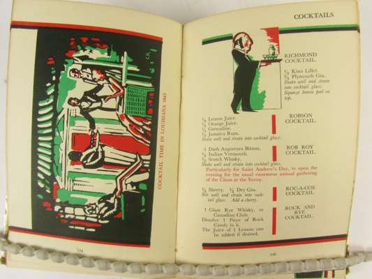 The Savoy Cocktail Book. London: Constable & Co., 1930. First edition, coloured illustrations by Gilbert Rumbold, original cloth-backed pictorial boards, some slight spotting, rubbed, spine detached