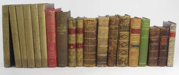 1851, or the adventures of Mr and Mrs Sandboys. London, [1851]. 8vo, folding frontispiece & 9 plates (1 plate seemingly not called for), original blue cloth gilt; Seneca Opera omnia. Geneva: P. Chouet, 1626. 2 volumes, 8vo, calf, vol. 2 repair to A1 slightly obscuring text, worn, one joint repaired; A Beckett, G.A. George Cruikshank's table-book. 1845. 8vo, etched plates, original green cloth gilt, some spotting; Seymour, Robert. Seymour's humorous sketches. 1846. 8vo, additional engraved title and plates, original red cloth gilt, upper hinge weak; Eliot, George Adam Bede. 1859. Fourth edition, 2 volumes, 8vo, original brown cloth, half-titles, 16pp. advertisements end of volume 1, rubbed; Theocritus Theocriti, Moschi, Bionis, Simii quae extant. [Heidelberg], 1604. 4to, contemporary calf; Lane, E.E. The thousand and one nights. 1877. 3 volumes, 8vo, contemporary calf gilt, Leven, C. The Daltons. 1852. 2 volumes, 8vo, etched titles & plates by Phiz, contemporary half calf; Knight, C. The gallery of portraits. 1836. 6 volumes, 4to, engraved portraits, original cloth, occasional spotting; and35 others, sold not subject to return