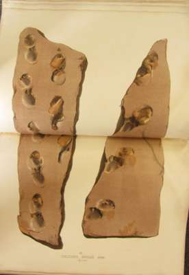 The ichnology of Annandale or illustrations of footmarks impressed on the new red sandstone of Corncockle Muir. Edinburgh: W.H. Lizars, 1853. First edition, folio, lithographed title and 13 plates (11 double-page), 2 lithographed illustrations, modern cloth retaining original paper label, title laid down, some dampstaining and occasional repairs in upper margin
