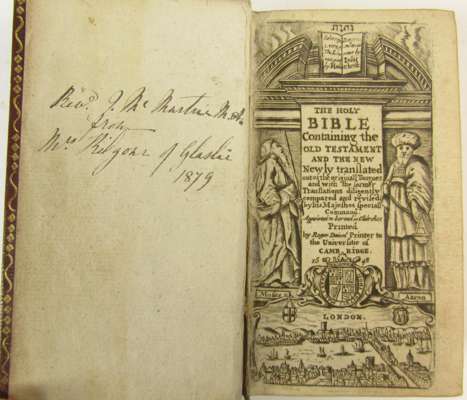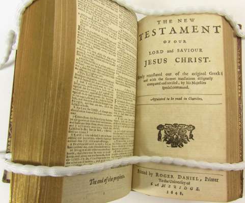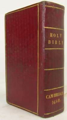 The Holy Bible. Cambridge: printed by Roger Daniel, Printer to the University of Cambridge, 1648. 18mo, engraved title, eighteenth century red morocco gilt, g.e., 18th century bookplate of George Forbes M.D., [Herbert 612]