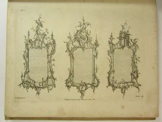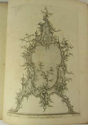 One hundred & fifty new designs by Thos. Johnson, carver. Consisting of ceilings, chimney pieces, slab, glass & picture frames, stands for china &c... engrav'd on 56 copper plates. London: Robert Sayer, 1761. 4to, engraved title and 55 engraved plates on laid paper, by B. Clowes after T. Johnson, original wrappers, spine worn, slightly spotted
