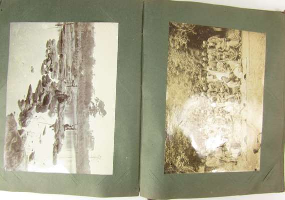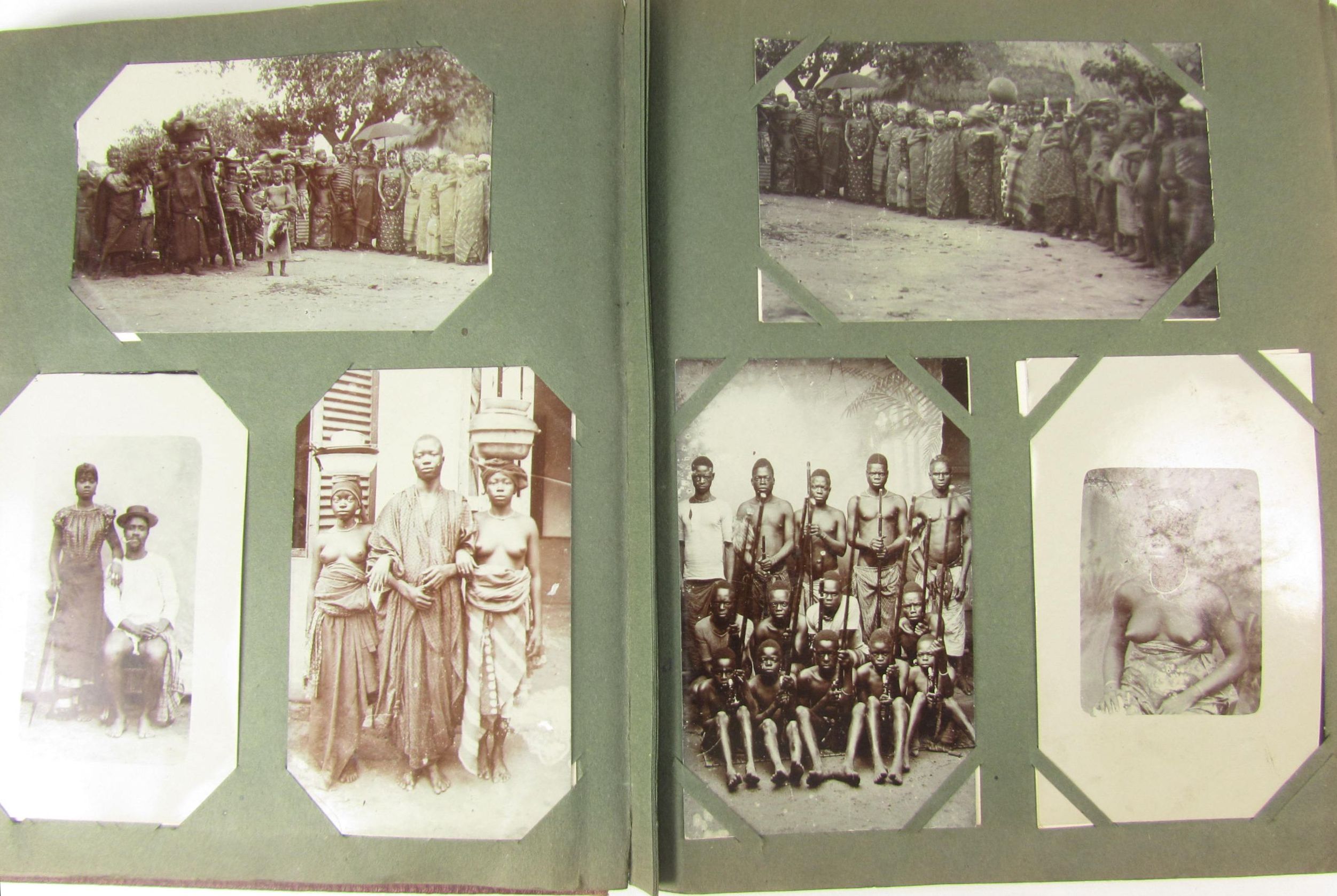 68 photographic postcards, some coloured, 85 x 140mm.; 74 Silver (?) prints of ? Lagos and Nigeria, 145 x 209mm., of local people, landscape, houses, British military, river scenes, agriculture, markets, village life, the Lagos Club, indigenous rituals, several captioned, two dated 1914, some faded, endpaper inscribed "Lagos, W. Africa", Edwardian cloth album