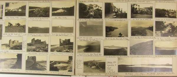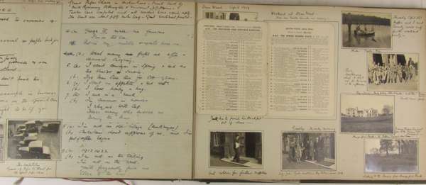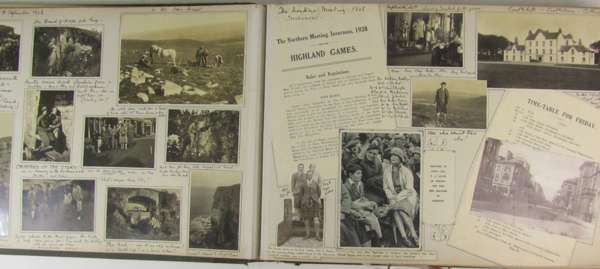 Photograph albums, of Leesthorpe and Sandside, and other Scottish locations, mounted with wedding and social invitations, newspaper cuttings, watercolour sketches, photographs of outings to seaside, theatricals, races, hunts, fishing, golf; 5 albums, c. 1900-1930; and several scrapbooks & manuscript compilations of holidays, entitled The Sandside Journal, 1916-26
