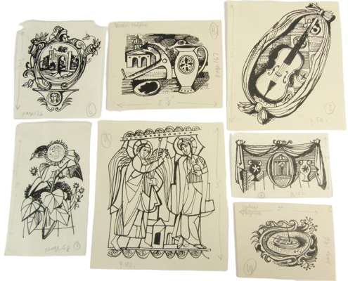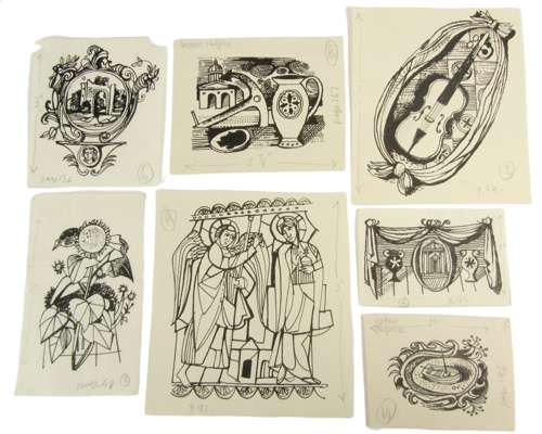 7 original ink sketches on paper, designed for "Orpheus", from 10.5 x 9.5 - 14 x 13cm.