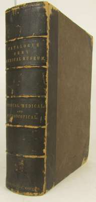 Catalogue of the surgical [medical, microscopical] section, prepared by Alfred A. Woodhull, [J.J. Woodward, Edward Curtis], 3 parts in one volume, 4to, Washington: Government Printing Office, 1866-67, plates, illustrations, half morocco, library stamp on title, rubbed