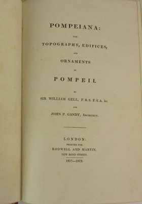 Pompeiana: the topography, edifices and ornaments of Pompeii. London: Rodwell & Martin, 1817-19. 8vo, additional engraved title and 79 plates and plans, (2 coloured), fine text engravings, contemporary diced calf gilt, bookplate of Thomas Wynn, 2nd Baron Newborough