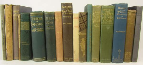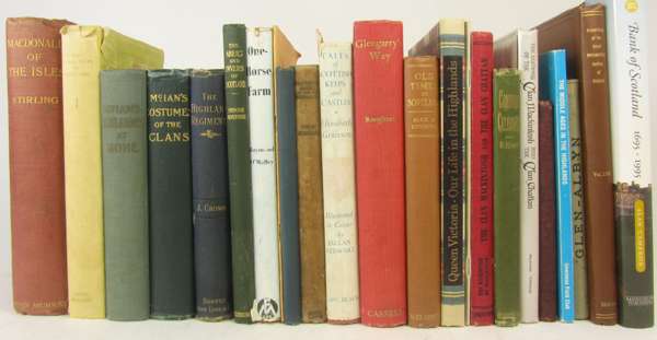 A history of the Highlands. Glasgow, 1838. 4 volumes, 8vo, engraved plates, contemporary half calf; Vindication of the Clanronald of Glencarry against the attacks made upon them in the Inverness Journal. 1821, engraved title, later cloth; Shaw, A.M. Historical memoirs of the House and Clan of Mackintosh and of the Clan Chattan. 1880. Presentation copy from the author, with annotations by the author, original cloth; Christison, David Early fortifications in Scotland. 1898. Large 8vo, maps, original buckram; Blackie, J.S. The Scottish Highlanders and the land laws. 1885. Original cloth; Graham, G. The Caledonian Railway. 1888, original cloth, soiled; Scots Lore Glasgow, 1895, red half morocco, rubbed; Anderson, William Genealogy and surnames. 1865, original cloth, rubbed; Grant, John Piobaireachd. 1915, frontispiece loose, original cloth; Fraser, A.D. Some reminiscences and the bagpipe. [c.1900]; Ellice, E.C. Place names in Glengarry and Glenquoich. 1898, original cloth; Mackenzie, A. The Macdonalds of Glengarry. 1881, original cloth; Thomson, D. The weavers' craft. 1903, original cloth; and 53 others, mostly Highlands and Islands; sold not subject to return (c. 69)