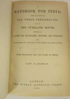 A handbook for India... Part II. - Bombay. London: John Murray, 1859. First edition, large 12mo, 3 maps (1 folding, 1 single-page, 1 folding and pocket at rear), 64pp. adverts, original red cloth gilt, some wear, fading and a few small tears to map