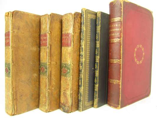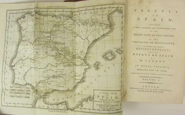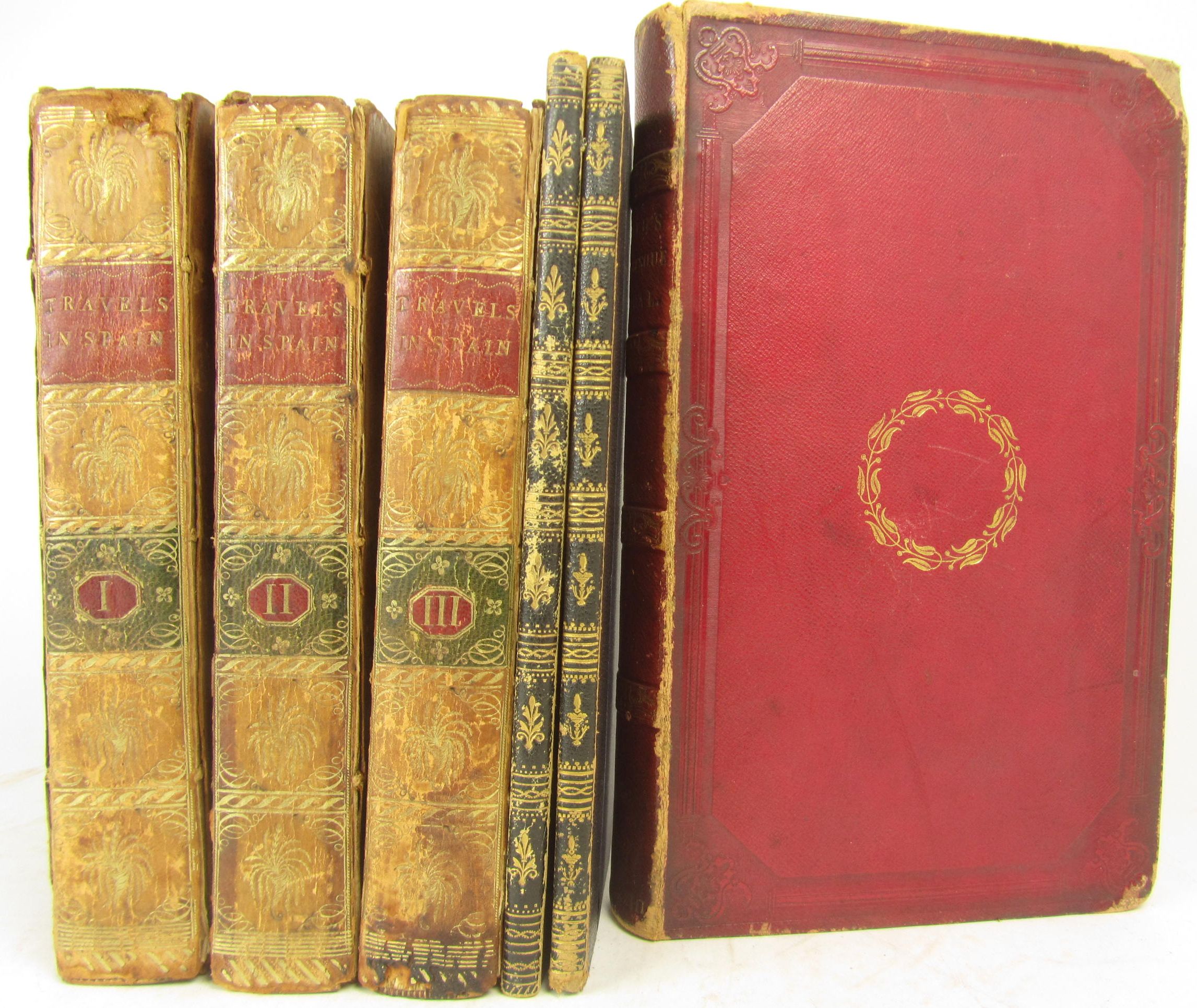 Travels in Spain. 1789. 3 volumes, 8vo, folding map and 11 plates, contemporary calf, worn; Ritchie, Leitch Travelling sketches on the Rhine, and in Belgium and Holland. 1833. 8vo, additional engraved title and 25 plates after C. Stanfield, contemporary red morocco gilt, g.e., rubbed, corners worn; Price, F.G.H. Temple Bar, or some account of "ye Marygold", London, 1875. 2 volumes, 8vo, plate and text volume, both presentation copies to Lord Arthur Russell, A.L.S. from author tipped in, 11 plates, full and half morocco gilt, slightly rubbed (6)