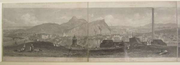Edinburgh from the Calton Hill, panorama in 6 sections, engraving backed on original linen,13 x 111.5cms., Ackermann & Co., [c.1847], professionally tipped in, newly mounted, the original folder with blue paper label loosely preserved on verso of backing board