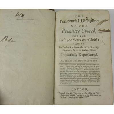 The Rule and Exercises of Holy Dying. 1655. 12mo, folding frontispiece, engraved title, contemporary panelled calf, pp.5-20 in facsimile, neatly rebacked; [Wharton, Henry] Anglia Sacra. 1691. Folio, volume 2 only, contemporary blindstamped Dutch vellum; Elstob, Elizabeth An English-Saxon Homily on the Birth-Day of St. Gregory. 1709. 8vo, engraved frontispiece, calf, worn, boards detached; Derham, W. Astro-Theology. London, 1750. 12mo, engraved frontispiece, & 3 folding plates, contemporary half calf, one torn without loss, one laid down, rubbed; Pomey, F. Pantheum Mythicum. Leipzig, 1771. 8vo, engraved plates, contemporary calf, spine gilt; Marshall, N. The Penitential Discipline of the Primitive Church. 1714. 8vo, contemporary calf; Boyse, S. The New Pantheon. Salisbury, 1777. 8vo, engraved plates, calf, worn; Tressan, l'abbé A History of the Heathen Mythology. 1806. 8vo, contemporary half calf; Clayton, R. An Enquiry into the Time of the Coming of the Messiah. 1751. 2 parts in one volume, title loose, some soiling, worn; [Taylor, M. England's Bloody Tribuanl. [c.1770]. 8vo, folding frontispiece (laid down), plates, contemporary calf, rebacked; Jamieson, John An Historical Account of the Ancient Culdees of Iona. Edinburgh, 1811. 4to, frontispiece, contemporary calf; Bishop of London, John Some account of the writings and opinions of Clement of Alexandria. 1835. 8vo, contemporary calf gilt; Macintyre, J.J. The Cross and the Crescent. 1854. 8vo, contemporary calf; Reeves, W. On the Céli-dé, commonly called Culdees. [from Transactions of the Royal Irish Academy, vol. 24, 1864], 2 copies, one the author's annotated and corrected copy, modern half calf and original quarter cloth; Wise, T.A. History of Paganism in Caledonia. 1884. 4to, 2 plates, illustrations, original cloth, lightly rubbed; and 2 defective; sold as a collection not subject to return (18)