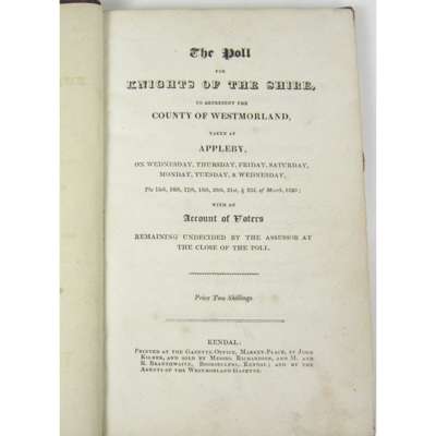 Westmorland Church Notes. Kendal: T. Wilson, 1889. First edition, 2 volumes, large 8vo, frontispiece, original printed wrappers bound in, later quarter calf gilt; Macpherson, H.A. & Ferguson, R.S. A Vertebrata Fauna of Lakeland. 1892. 8vo, folding map, 8 plates, modern green half morocco gilt; Sullivan, J. Cumberland & Westmorland, ancient and modern. Kendal, 1857. 8vo, original cloth, worn, with partial loss of spine; The Poll for Knights of the Shire, to represent the County of Westmorland. Kendal, [1820], 8vo, contemporary half calf, upper cover detached; Bulmer, T. History, Topography, and Directory of Westmorland. Preston, [c.1905], original cloth, rubbed; and 3 others (9)