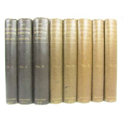 The Ecclesiastical Architecture of Scotland. Edinburgh, 1896-97. 3 volumes; The Castellated and Domestic Architecture of Scotland. 1887-92, 5 volumes, uniform pictorial brown and blue buckram gilt, t.e.g., bookplates of Robert Leslie Hunter, some spotting to endpapers