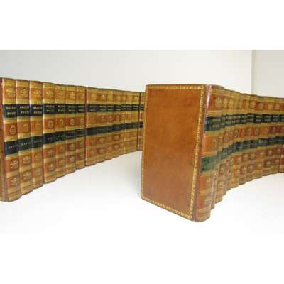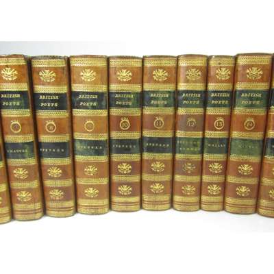 The Poets of Great Britain. London: Cadell and Davies... and Samuel Bagster, 1807. 124 vol. in 61 (complete), edited by John Bell, engraved additional titles and frontispieces from John Bell's edition (1782 etc.), contemporary polished calf, gilt scroll borders, flat spines gilt with dark morocco labels, 12mo, a fine set