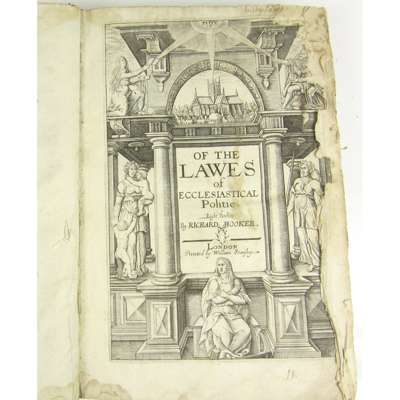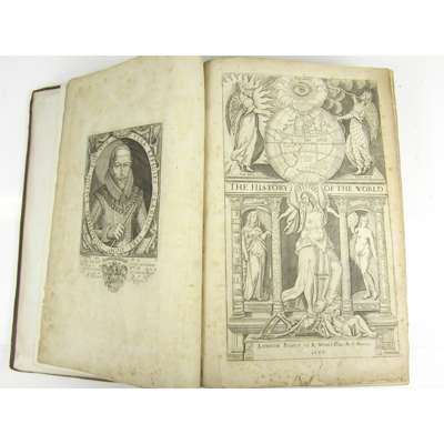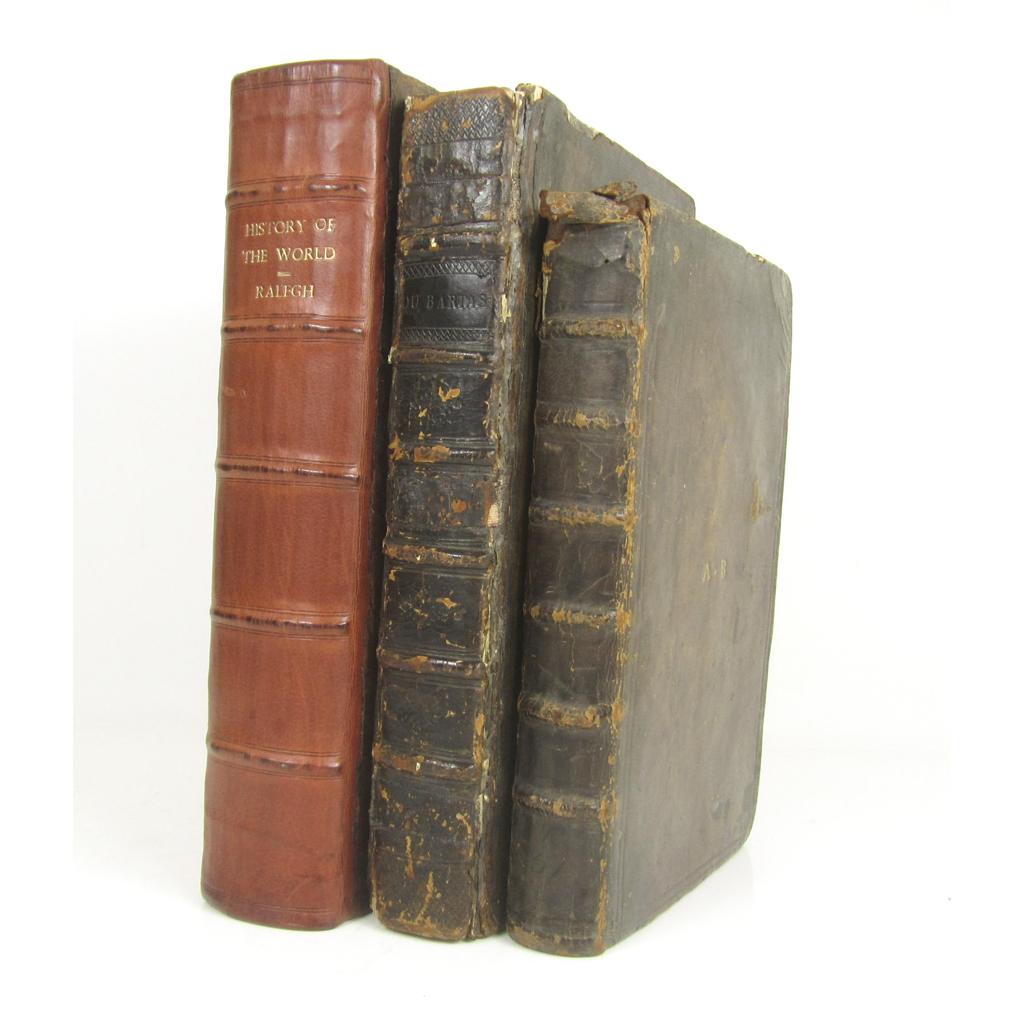 The Historie of the World. London, 1666. Folio, additional engraved title, 4 (of 8) double-page plates and maps, contemporary calf, rebacked, corners repaired; Hooker, Richard Of the Lawes of Ecclesiastical Politie. London: William Stansbye, [1622]. First edition, 4to, engraved title, contemporary calf, [STC 13717], dampstained, some worming, preliminary leaves & leaves at end frayed, worn; Du Bartas, G. de S. His Divine Weekes and Workes. London: R. Young, 1633. Folio, engraved title, trimmed and and laid down, lacks portrait and A5 ["The Order of the Bookes"], contemporary calf, [STC 21654], rebacked, worn (3)