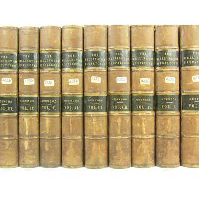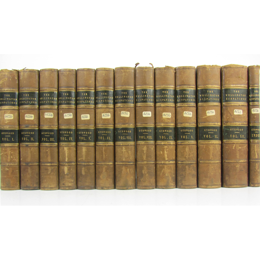 The Dispatches. London: John Murray, 1834. 13 volumes, edited by Lt. Col. Gurwood, 8vo, contemporary half calf, bookplate of the Princess Louise's Argyll & Sutherland Highlanders, slightly rubbed