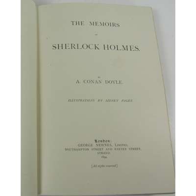 The Memoirs of Sherlock Holmes. London: G. Newnes, 1894. First edition, 8vo, illustrations by Sidney Paget, original blue cloth gilt, g.e., slight marks to upper cover