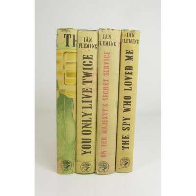 The Spy who Loved Me, 1962. Original black cloth with silver knife motif to upper board, dust-jacket not price-clipped; [Idem] On Her Majesty's Secret Service, 1963. Original cloth, dust-jacket not price-clipped; [Idem] You Only Live Twice, 1964. Original black cloth with gilt Japanese lettering to upper cover; [Idem] The Man with the Golden Gun, 1965. Original black cloth gilt, dust-jacket not price-clipped; all first editions, 8vo, London: Jonathan Cape, each with ownership signature to front free-endpaper, date stamps, a little chipping to dust-jackets, some occasional light foxing (4)