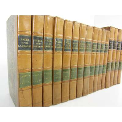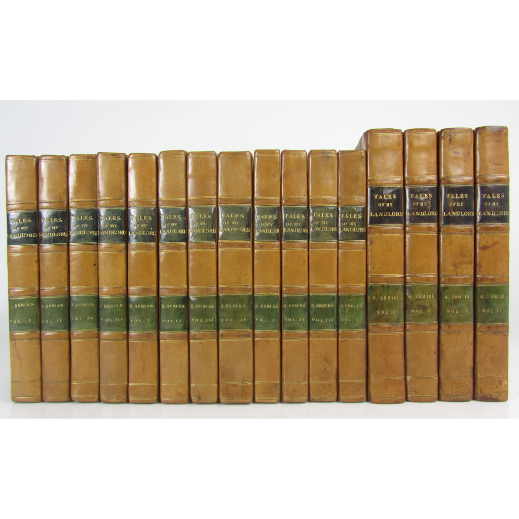 Tales of My Landlord. Edinburgh: W. Blackwood, 1816 [-R. Cadell, 1832]. Series 1-4, each 4 vol., together 16 volumes, 12mo, First editions, uniform contemporary half calf, spines gilt, morocco lettering pieces, bookplates of Field Marshall William Earl Harcourt, G.C.B. (16)