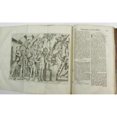 The Commentaries... of his Wars in Gallia, translated by Clement Edmonds. Savoy: J. Edwin, 1677. Folio, title printed in red and black, engraved frontispiece, and 14 plates, some folding, contemporary calf, plate at p.213 split along fold, head and base of spine chipped