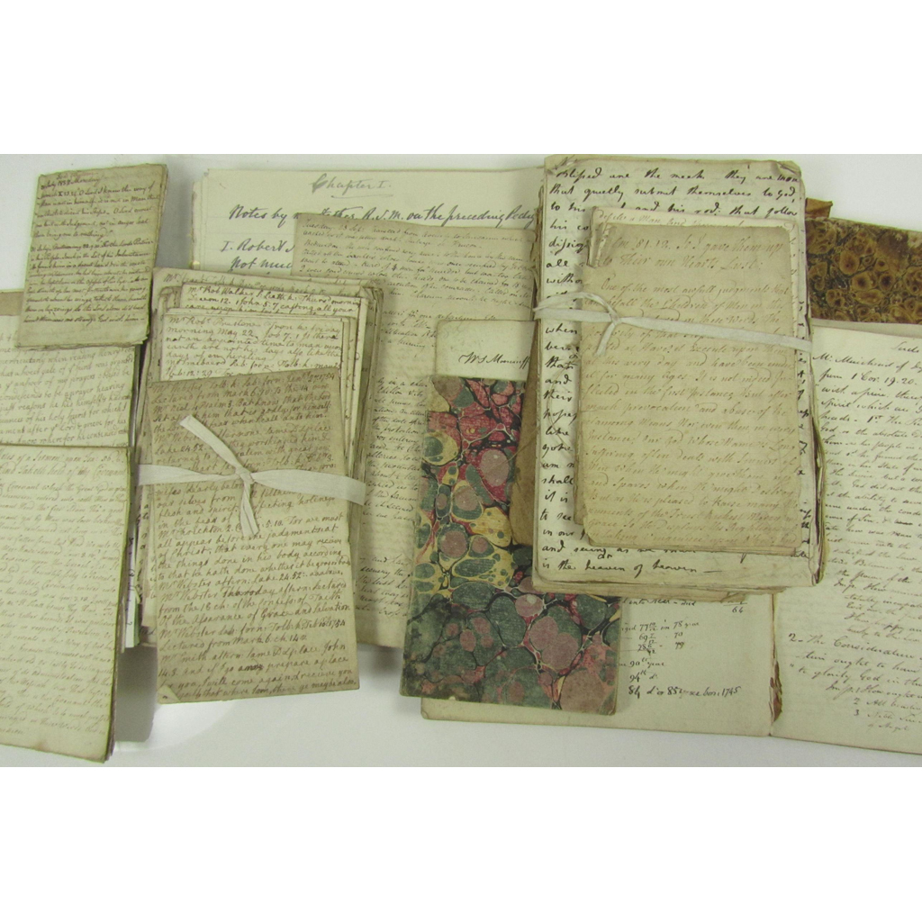 Circa 350 pages, 8vo or 12mo, chiefly sermons or reports on sermons, at the Tron Kirk, The Tolbooth Kirk, or "in the Park", notebook on sermons c.1808, early 20th century account of Scott-Moncrieff family history, 64pp., on loose leaves, &c.