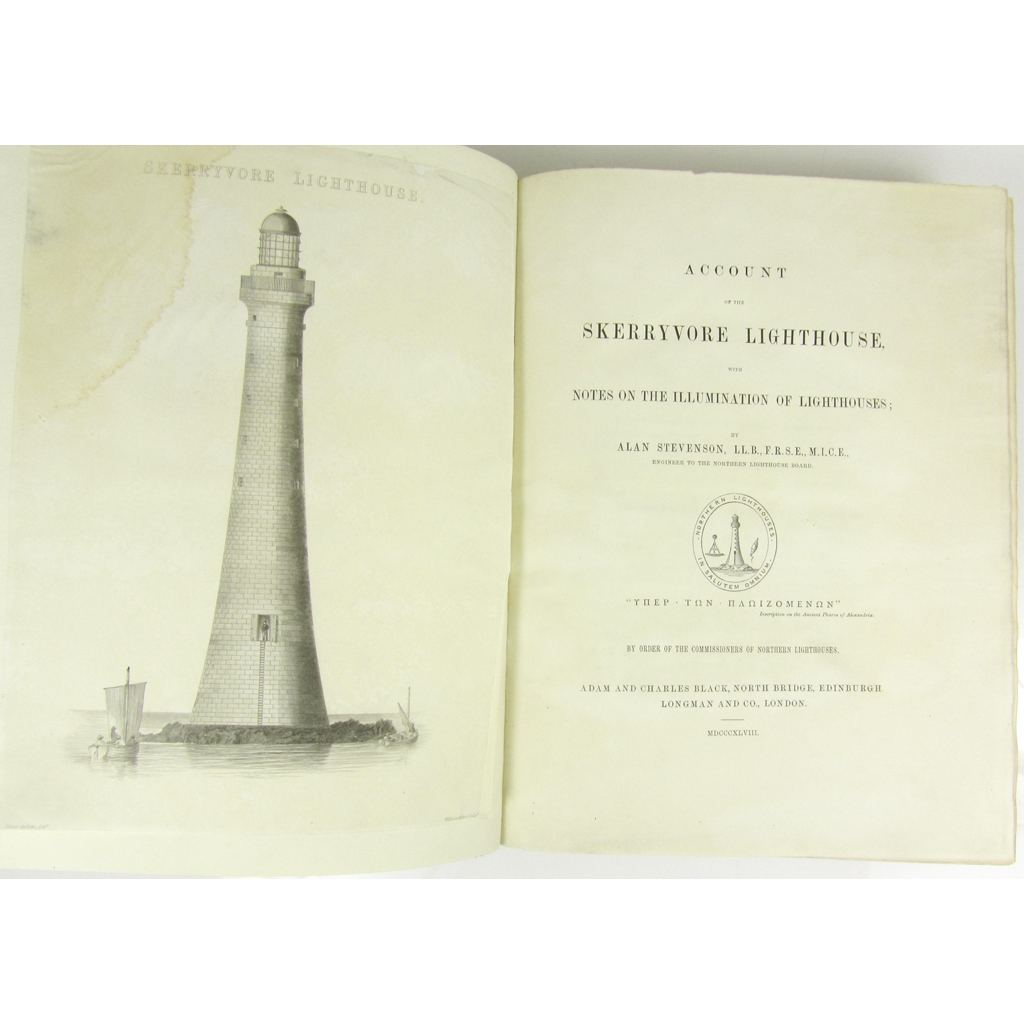 Account of the Skerryvore Lighthouse... Edinburgh: Adam and Charles Black, 1848. 4to, frontispiece, 33 plates, original red cloth gilt, some light dampstaining, some spotting, fading and rubbing to covers, tears along joints