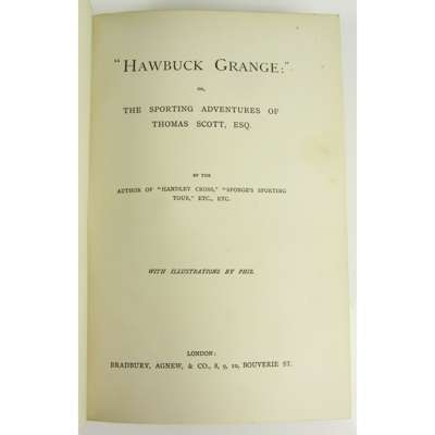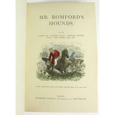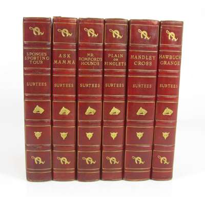 Mr. Sponge's Sporting Tour; "Ask Mamma"; Mr Romford's Hounds; "Plain or Ringlets?"; "Hawbuck Grange"; Handley Cross; all London: Bradbury, Agnew, & Co., [n.d.] 6 volumes, 8vo, red half morocco with gilt tooling to spines by Bumpus & Co. (6)