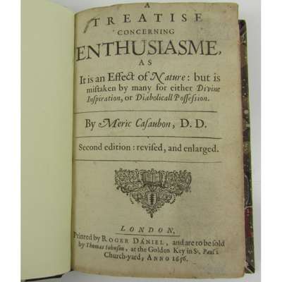 A Treatise concerning Enthusiasme, as it is an Effect of Nature. London: Roger Daniel, 1656. Second edition, 8vo, modern calf-backed boards, [Wing C813], first letter of title and some headlines shaved, lacking final blank