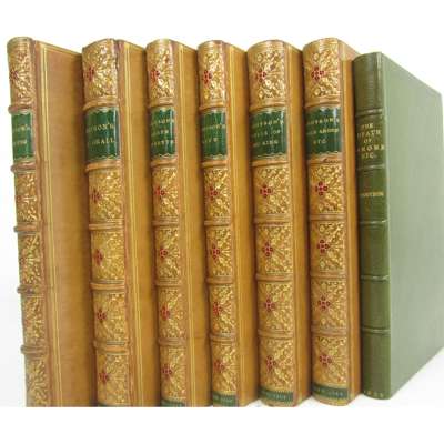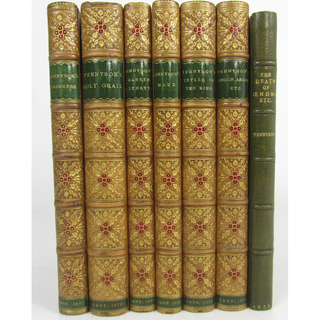 The Princess, 1848; Maud, 1855; Idylls of the King. 1859; Enoch Arden, 1864; The Holy Grail, 1870; Gareth and Lynette, 1872; all but the first First Editions, uniform calf gilt by F. Bedford, spines gilt red morocco onlays and green morocco labels, t.e.g.; The Death of Oenone. 1892. 8vo, green morocco gilt by Riviere, t.e.g. (7)
