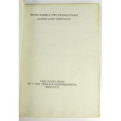 Seven Poems & Two Translations. [London] Hammersmith: The Doves Press, 1902. Small 4to, original vellum with The Doves Bindery stamp to lower endpaper, text in red and black, inscribed by T.J. Cobden-Sanderson (printer) to Eva Muir on endpaper, some very slight foxing and a little soiling and bending to covers
