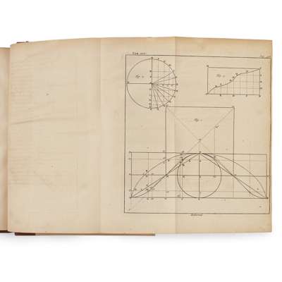 Ouvrages de Mathématique [in Memoires de l'Academie Roiale des Sciences..., volume 3]. The Hague: P. Gosse & I. Neaulme, 1731. 4to, collates: [2], 399, [1], 26 folding plates, modern quarter calf gilt over boards, library accession sticker to volume title, library number stamp to title-page verso