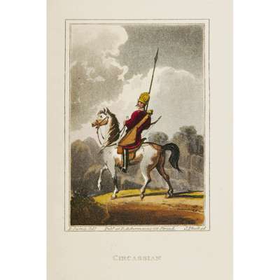 Sketches of Russia. London: R. Ackermann, 1814. 8vo, 15 hand-coloured plates and one sheet of music, contemporary quarter calf