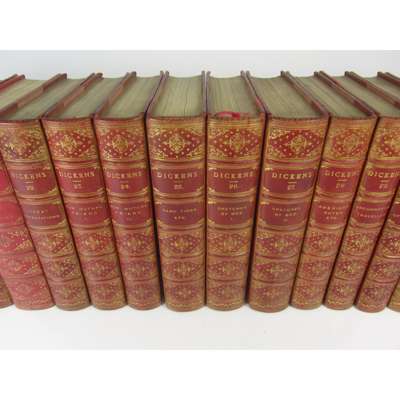 The Works... with the Original Illustrations. London: Chapman & Hall, 1899. The Gadshill edition, 34 volumes, 8vo, red half morocco gilt, t.e.g., a fine set
