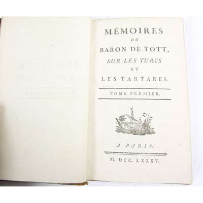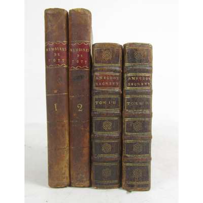 Anecdotes, ou Histoire Secrette de la Maison Ottomane. Amsterdam.: Par la Compagnie, 1722 - 4 volumes in 2, 12mo, contemporary calf gilt, half-titles, slightly cracking, head and tail of spines rubbed; Tott, François, Baron de Mémoires. Paris, 1785. 2 volumes, 8vo, contemporary half calf, head and tail of spines rubbed (4)