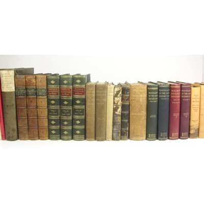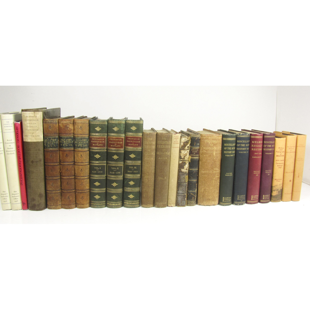 Cassell's Old and New Edinburgh... London: Cassell & Company, Limited, [n.d. but c.1880?] 3 volumes, large 8vo, contemporary half calf; Groome, Francis H., editor Ordnance Gazetteer of Scotland... Edinburgh: Thomas C. Jack, 1886. 3 volumes, large 8vo, green half calf gilt; Armstrong, Robert Bruce The History of Liddesdale, Eskdale, Ewesdale, Wauchopedale and the Debatable Land. Edinburgh: David Douglas, 1883. 4to, part 1, number 103 of 275 small paper copies, original cloth with paper label to spine, some damp-staining; Douglas, Robert General View of the Agriculture in the Counties of Roxburgh and Selkirk... Edinburgh: G. Nicoll, 1798. 8vo, 2 folding maps, plates, contemporary half calf, covers wormed; Scottish History Society - Charles S. Romanes, editor Selections from the Records of the Regality of Melrose, volume ii, 1662-1676. Edinburgh, 1915; 13 others relating to Scotland, 2 relating to Bradford and 1 relating to Horton, sold not subject to return (25)