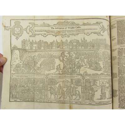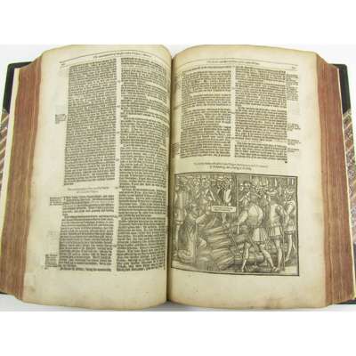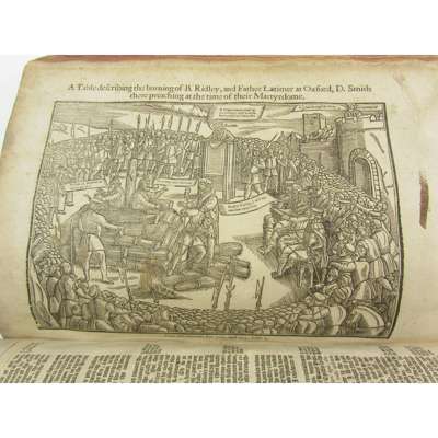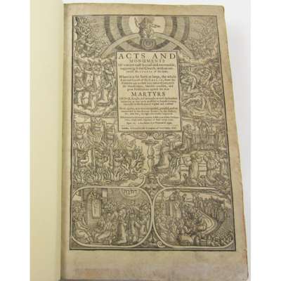 Acts and Monuments... London: Printed for the Company of Stationers, 1641. 3 volumes, folio, titles within large woodcut borders, folding woodcut of Windsor Castle in vol. 2 (p.555); numerous woodcuts in text, modern black half morocco, raised bands, lettered in gilt, volume 3 lacks final leaf (p.1033), seemingly lacking 43pp at end of vol. 1 and 94pp at end of vol. 3, pages 41-43 volume 1 frayed and probably inserted from another copy, lacks portrait and half-title in volume 1, [ESTC R29862]
