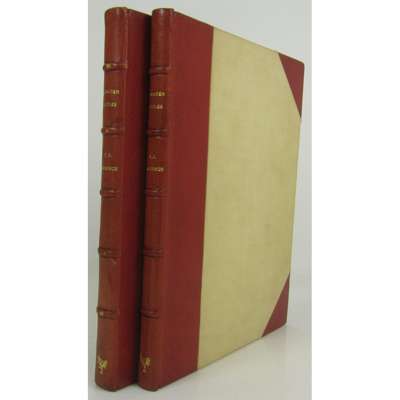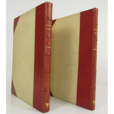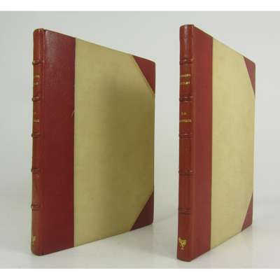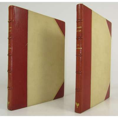 Crusader Castles, edited by A.W. Lawrence. London: The Golden Cockerel Press, 1936. First edition, number 24 of 1,000 copies, 2 volumes, 4to., titles printed in red, collotype frontispiece in volume 2, collotype and line facsimiles, illustrations, maps and plans after Lawrence in the text, many full-page, some colour-printed. 2 folding maps after H. Pirie-Gordon contained in a loosely-inserted envelope, original red crushed half morocco over cloth by Sangorski & Sutcliffe, spines gilt, top edge gilt, others uncut, extremities lightly rubbed, spines slightly faded, cloth lightly marked