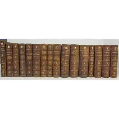 Catalogue of the Library at Abbotsford. 1838; Mackay, John The Life of Lieut.-General Hugh Mackay. 1836; Mackay, Hugh Memoirs of the War carried on in Scotland and Ireland 1689-1692. 1833; Nicoll, John A Diary of Public Transactions and other Occurrences, chiefly in Scotland 1650-1667. 1836; Inventaires de la Royne D'Escosse Douairiere de France. Catalogues of the Jewels, Dresses, Furniture, Books and Paintings of Mary Queen of Scots 1556-1569. 1863; Virgil. The Aeneid of Virgil translated into Scottish Verse by Gawin Douglas Bishop of Dunkeld. 1839, 2 volumes; Excerpta E. Libris Domicilii Domini Jacobi Quinti Regis Scotorum. 1836; The Diary of Mr James Melvill 1556-1601. 1829; Instrumenta Publica sive Processus Super Fidelitatibus et Homagiis Scotorum. 1834; De Arte Logistica Joannis Naperi. 1839; Teulet. A. Papiers d'état... relatifs a l'histoire de l'Ecosse. Paris, 1851, 3 volumes; Hectoris Boethii Murthlacensium et Aberdonensium Episcoporum Vitae. 1825; Letters and Papers relating to Patrick Master of Gray. 1835; De Vita et Morte Roberti Rollok. 1826; Moysie, David Memoirs of the Affairs of Scotland. 1830; Nicolas, N.H. The Siege of Carlaverock. 1828; The Accounts of the Great Chamberlains of Scotland 1326-1453. 1817, 3 volumes; all brown half morocco gilt, , t.e.g., spines gilt, Marquis of Lothian's copies with crested "L" at head of spines, rubbed (17)
