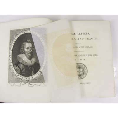 Royal Letters, Charters and Tracts, relating to the Colonization of New Scotland. 1867, plates, maps; Concilia Scotiae. 1866, 2 volumes bound in one, frontispiece; Adversaria. Notices illustrative of some of the earlier works. 1867, plates; Kerr, Sir Robert Correspondence of Sir Robert Kerr, First Earl of Ancram and his son William, Third Earl of Lothian. 1875, 2 volumes; Myln, A. Vitae Dunkeldensis Ecclesiae Episcoporum. 1831; Kennedy, Quintine Ane Oratioune. 1812; bound with 2 others; Catalogue of the Graduates in the Faculties of Arts, Divinity and Law. 1858; 2 volumes rubbed (8)