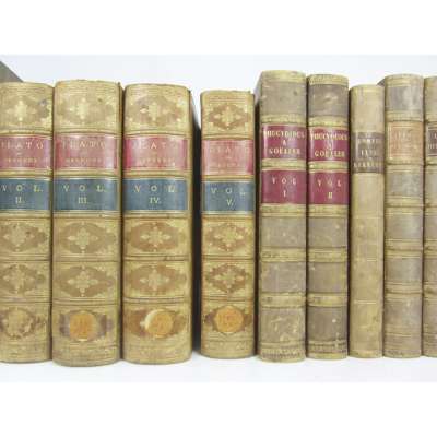 largely leather bound, various sizes, a quantity, including Cicero Opera. Amsterdam, R. & G. Wetsten, 1724. 4to, volumes 2-4 (of 4), red morocco-backed boards, worn, c. 3 boxes
