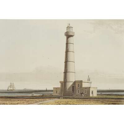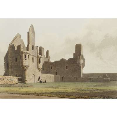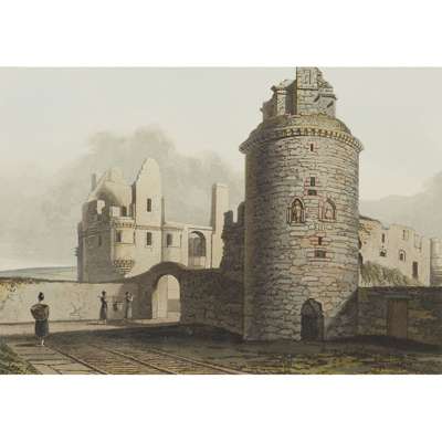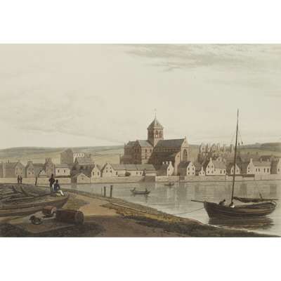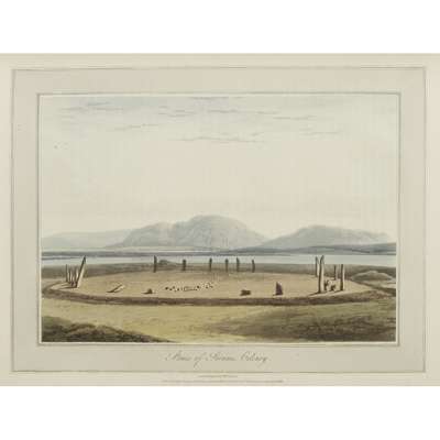 A Voyage Round the North and North-West Coast of Scotland... London: W. Lewis, [1818-1820]. Folio, 40 (of 42) hand-coloured plates (lacking two plates), later green half morocco, J. Robertson bookplate, a little offsetting, occasional slight dust-soiling and some minor foxing; [Idem] A Voyage Round Great Britain...volume v. London: Longman, Hurst, Rees, Orme, and Brown, 1821. Folio, 6 plates only (with title-page, dedication and 34pp. of corresponding text), all showing Orkney scenes, hand-coloured, contemporary panelled calf gilt, rebacked retaining original spine, bookplates of Jas. R. Hoffmann and J. Robertson, a little offsetting and light foxing, becoming slightly heavier towards rear (2)