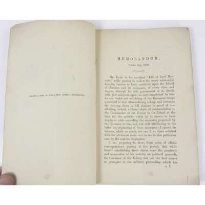The Story of Newcastle, Jamaica. Date of Landing in Jamaica, 1st January 1840. Date of departure from the colony, January 1842. Westminster. Printed for Private Circulation, 1864. Presentation copy to the Marquis of Lothian, initialled by the author, 56pp., stitched as issued, title and final verso soiled