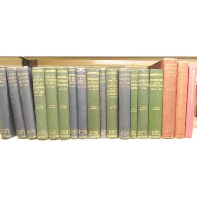 Pre-Reformation Churches in Fife and the Lothians. 1888. Folio, plates, quarter morocco, pictorial boards, worn, lacks spine; MacDonald, J. An Account of the Roman Stones in the Hunterian Museum. Glasgow, 1897. 4to, plates, original buckram; Colston, James The Edinburgh and District Water Supply. Edinburgh: Printed for Private Circulation, 1890. Large 8vo, etched plates, blue half morocco, t.e.g., rubbed; Skene, W.F. Celtic Scotland. 1876, 2 vol., original green cloth gilt; Tancred of Weens, G. The Annals of a Border Club. Jedburgh, 1899. 2 copies, Newbattle Abbey Library stamps, original cloth gilt; Laidlaw, Walter Poetry and Prose. Jedburgh, 1904. Second edition, presentation copy from the author, original cloth, frontispiece loose; Groome, F.H. Ordnance Gazetteer of Scotland. [c.1880]. 7 vol., 8vo, plates, maps, original blue cloth gilt; Colston, James Trinity College and Trinity Hospital. Edinburgh: printed for the Magistrates & Town Council, 1896. 2 vol., 4to., presentation copy from the author, plates, contemporary green half morocco, t.e.g., rubbed; Lindesay of Pitscottie, Robert The Historie and Cronicles of Scotland. Scottish Text Society, 1899. 2 vol., quarter purple morocco, rubbed; Seton, Sir Bruce G. The Prisoners of the '45. 1928, 3 vol., original green cloth gilt; Spalding, John The History of the Troubles and Memorable Transactions in Scotland. Aberdeen, 1792. 2 vol., 12mo, later half morocco, titles remounted with loss of a couple of letters, Paisley Free Library bookplate and stamps, some dust-soiling, rubbed; Highland and Agricultural Society of Scotland Catalogue of Stock, Edinburgh Show, 1899. 8vo, photograph frontispiece, later half calf gilt; Essays and Observations Physical and Literary. Edinbrugh, 1754. volume 1 only, 8vo, original boards, folding plates, worn, upper cover virtually deached; and a quantity of miscellaneous works on Scotland; sold not subject to return