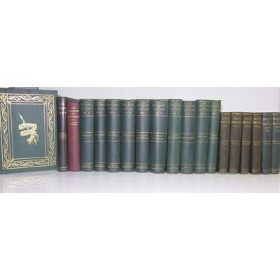 Diary of Alexander Jaffray, Provost of Aberdeen. 1834. contemporary calf, lacks head of spine; Laing, David The Historians of Scotland. 1872, 10 vol., original cloth. vol. 4 shaken; Hogg, James The Raid of the Kers by the Ettrick Shepherd. [1876], lithographed throughout, original pictorial cloth gilt, g.e.; Cadell, R. Sir John Cope and the Rebellion of 1745. 1898, 4to, original buckram gilt, t.e.g.; Wilson, Professor Noctes Ambrosianae. 1864, 4 volumes; Recreations of Christopher North. 1865, 2 vol, original cloth; Tayler, A. Jacobites of Aberdeenshire & Banffshire in the Forty-Five. 1928; Jacobite Letters to Lord Pitsligo 1745-1746. 1930, stamp to titles, original cloth; Royal Scottish Academy 42nd, 61st, 64th, 65th, 68th Annual Report. 1869-95, original red cloth gilt; Chambers, R. Domestic Annals of Scotland. 1858. 3 volumes, original cloth; Glenfillan, G. The National Burns. [c.1870], 4 volumes, 4to, plates, original pictorial cloth gilt, g.e.; Hunter, James Fala and Soutra. 1892. 4to, original cloth; Allan, C.J. Cockpen Bazaar Book. 1897, original cloth; Chambers, R. A Biographical Dictionary of Eminent Scotsmen. 1835, 4 vol., contemporary half calf gilt; MacEchern, D. The Sword of the North. 1923. 4to, original cloth; Boulton, H. Prince Charlie in song. 1934. 4to, frayed dustwrapper; and c.20 others, on Scotland (c. 62)