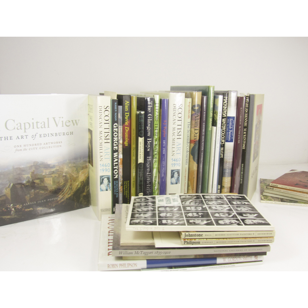 Geddes, Jean & Margaret Morris Cafe Drawings in Edwardian Paris from the Sketch-Books of J D Fergusson. Glasgow: Blackie, 1974; Bilcliffe, Roger The Glasgow Boys... London: John Murray, 1988. 4to; Bumpus, Judith Elizabeth Blackadder. Oxford: Phaidon, 1988. 4to; Macmillan, Duncan Scottish Art. Edinburgh: Mainstream Publishing, 1990. 4to; Bilcliffe, Roger The Scottish Colourists... London: John Murray, 1990. 4to; Humphries, Lund Alan Davie. London, 1992. 4to; Robson, Euan George Houston, Nature's Limner. Edinburgh: Atelier Books, 1997. 4to, signed by the author; Peploe, Guy S.J. Peploe. Edinburgh: Mainstream Publishing, 2000. 4to; and 30 others, sold not subject to return (38)