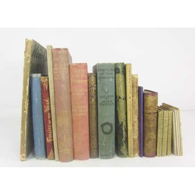 The Winter Owl. London: Cecil Palmer, [1923?] 4to, 10 plates, original pictorial boards, spine chipped, some wear to covers; Caldecott, R. [A collection of picture books bound together, published by George Routledge and Sons, comprising:] The Mad Dog; The Three Jovial Huntsmen; The Babes in the Wood (some holes affecting text and images); The House that Jack Built; The Diverting History of John Gilpin (some tears and repairs to leaves); Leech, John Follies of the Year. London: Bradbury, Evans & Co., [1865]. Oblong 4to; Aldin, Cecil Just Among Friends. London: Eyre and Spottiswoode, 1934. 4to, original cloth; Andersen, Hans - Kay Nielsen, illustrator Fairy Tales. London: Hodder and Stoughton, [n.d.] 4to, original red cloth gilt, covers faded and soiled, bookplate; Basile, Giambattista Stories from the Pentamerone. London: Macmillan and Co., 1911. 4to, red cloth gilt; Hall, S.C. Midsummer Eve. London: John Camden Hotten, 1870. 8vo, signed and inscribed by the author to Miss Agnes Blake, original cloth; Wagner, Richard - Arthur Rackham, illustrator The Ring of the Niblung. London: William Heinemann Ltd., 1939. First edition, 8vo, original blue cloth; Towry, M.H. Spenser for Children. London: Chatto and Windus, 1878. 8vo, original green cloth gilt; and 12 others, sold not subject to return (21)
