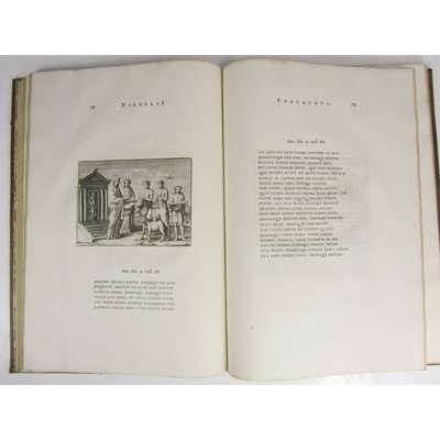 Antiquissimi Virgiliani Codicis Fragmenta et Picturae ex Bibliotheca Vaticana. Ad priscas Imaginum formas A Petro Sancte Bartholi Incisae. Rome: ex Chalcographia R.C.A. apud Pedem Marmoreum, 1741. Folio, [2], xxii, 225, [1]; engraved title, numerous large engraved illustrations by Pietro Santi Bartoli, contemporary speckled calf, green morocco lettering piece, joints splitting, head and tail of spine rubbed, bookplates of Sir John Cope Bart. and C.E. De M.K., wide margins