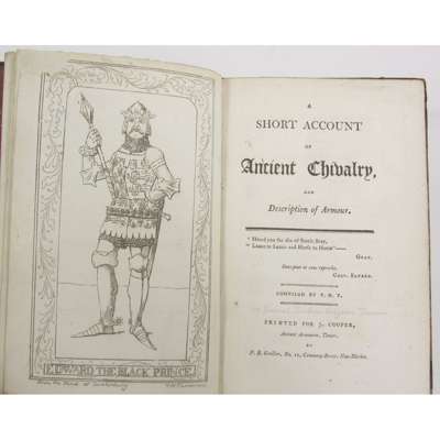 A Short Account of Ancient Chivalry... [London:] J. Cooper, [1799?] 8vo, portrait, 4 plates, contemporary half calf, bookplate, upper left corner torn from portrait slightly affecting engraving, joints splitting