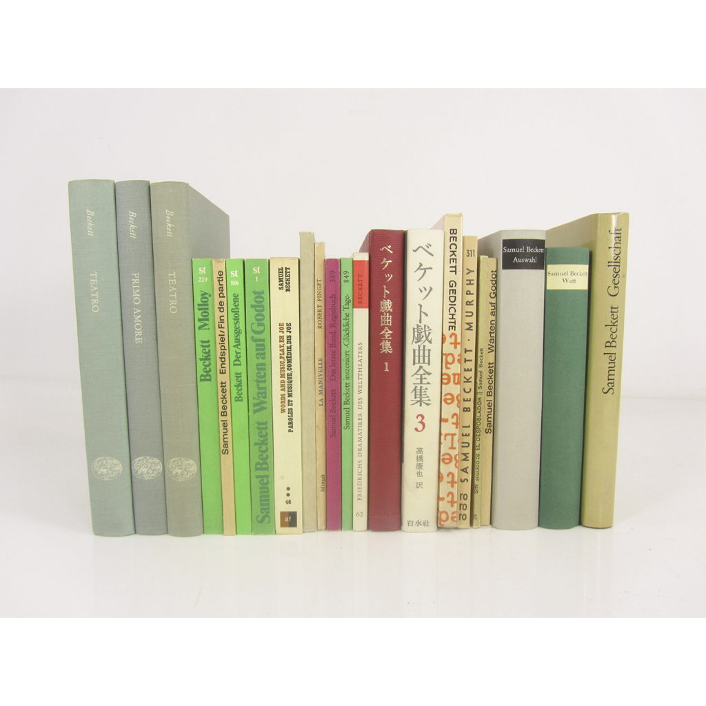 A collection of translations of Beckett's works, 15 of which are presentation copies inscribed to Barbara Bray, mainly: "For Barbara, with love from Sam", including: Gedichte. Wiesbaden, 1959; Murphy. Hamburg, 1959; Warten auf Godot. Frankfurt, 1960; Endspiel. Frankfurt, 1960; Primo Amore Seguito da Novellee Testi per nulla. Turin, 1972; and a collection of others